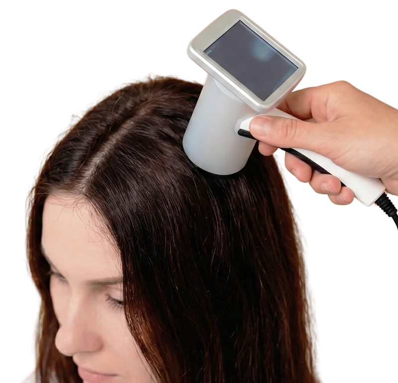 Neinvazívne vyšetrenie pokožky hlavy a vlasov digitálnou kamerou, ktorá odhalí stav folikulov a hustotu vlasov.